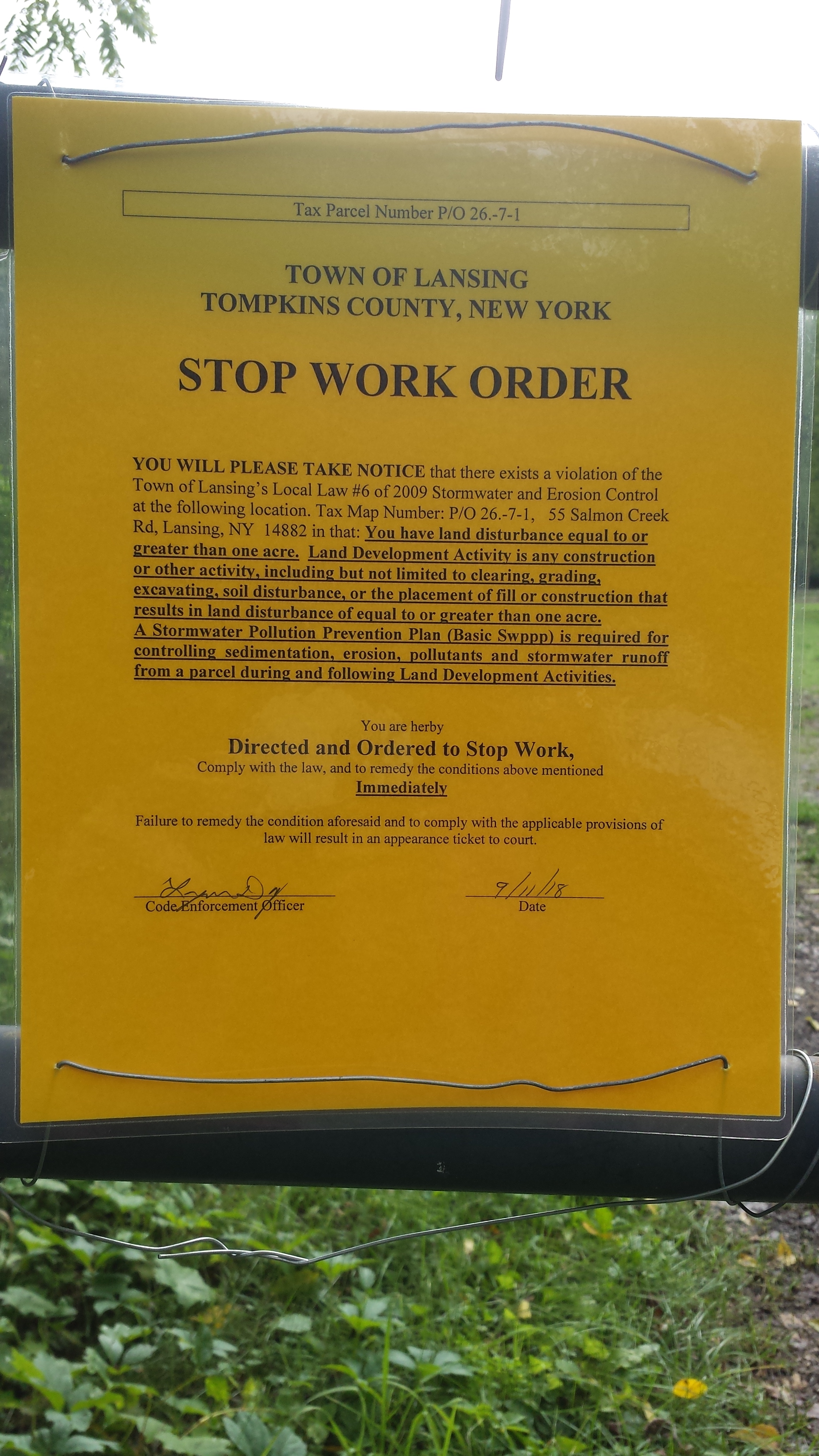 “They’re thumbing their noses at all levels of government — and their neighbors,” Gay Nicholson said at a Lansing Town Board meeting Sept. 5. “I would like to see the town issue a stop-work order immediately.”