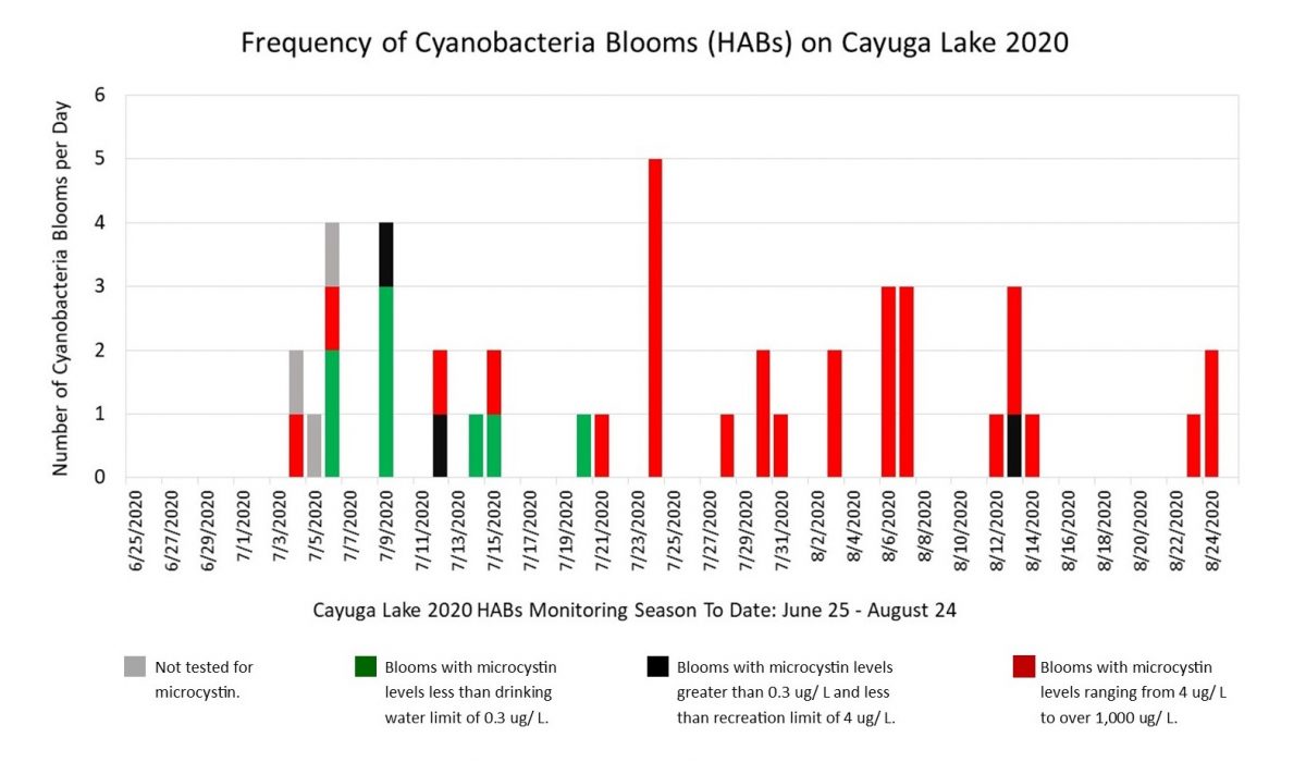 Unlike the other Finger Lakes, Cayuga Lake has access to actual toxin testing, thanks to a lab at CSI, which also posts a detailed chart of its sample results.