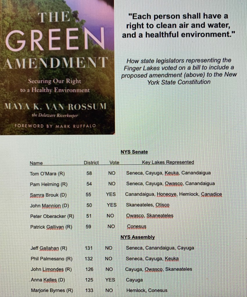 Van Rossum said the state’s proposed constitutional amendment could help the Finger Lakes residents, businesses and municipalities in their quest for environmental impact statements to rigorously analyze the risks of those projects.