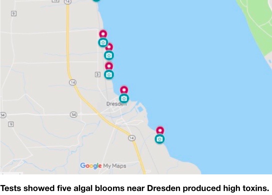 Tests have shown several blooms near Dresden, including five that exceeded the DEC’s threshold for “high toxin” in 2018.