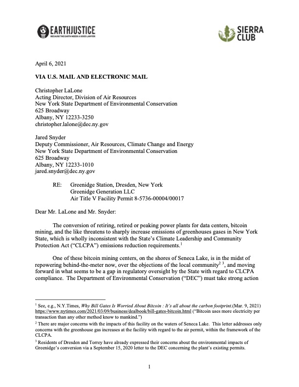 This spring EarthJustice and the Sierra Club warned New York State officials that a surge of Bitcoin operations here could be a catastrophic setback for CLCPA.