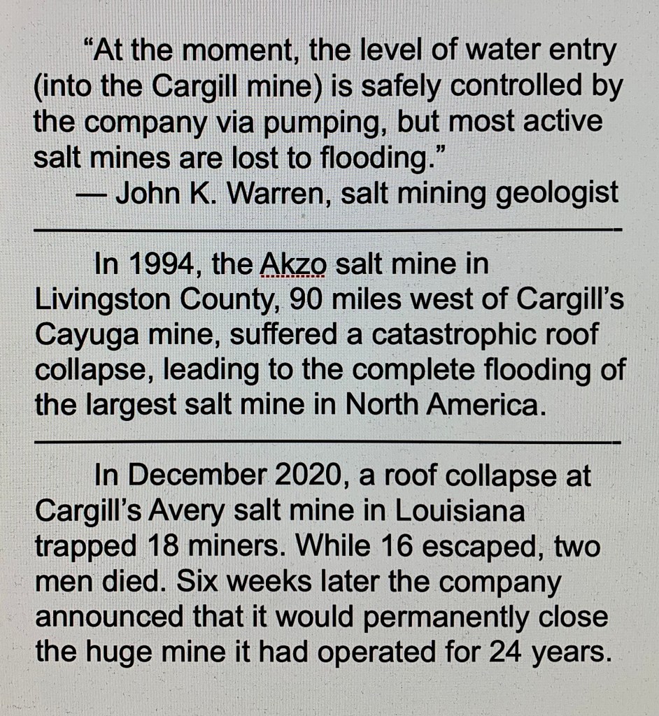 He summed up his most recent analysis of Cargill’s Cayuga salt mine, saying: