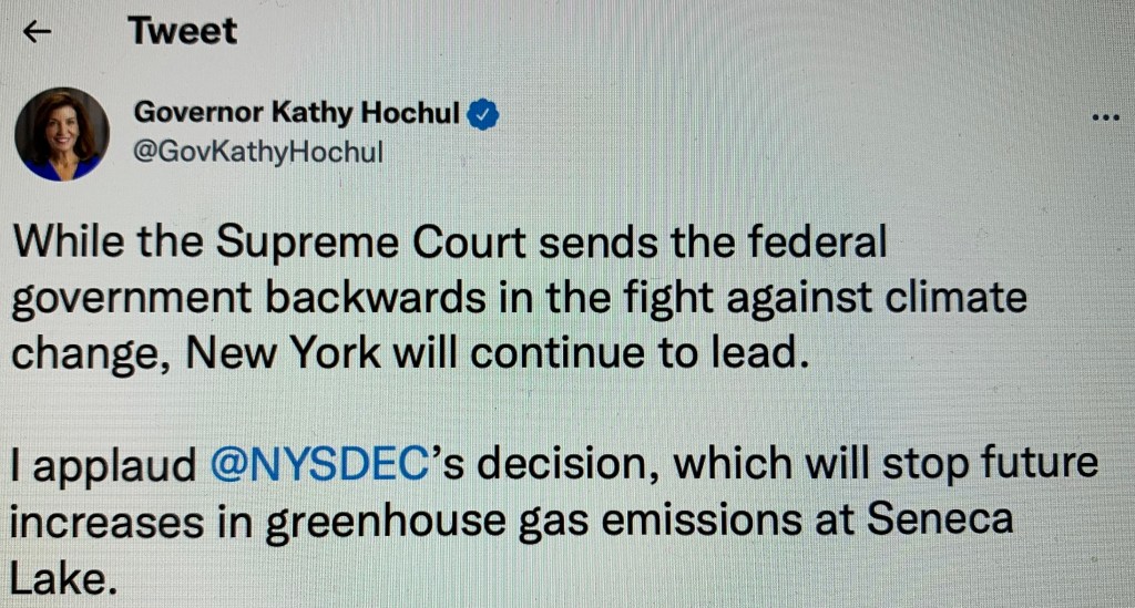If so, that means Gov. Hochul’s June 30 tweet saying the air permit denial would “stop increases in greenhouse gas emissions at Seneca Lake” was not accurate. The permit denial doesn’t prevent Greenidge from adding new Bitcoin mining machines, as planned. More machines would require increased power generation, causing higher ghg emissions.