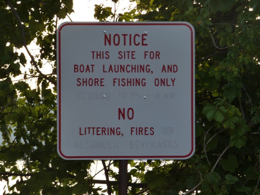 Posted notices at the boat launch warn: “This site is for boat launching and shore fishing only.”