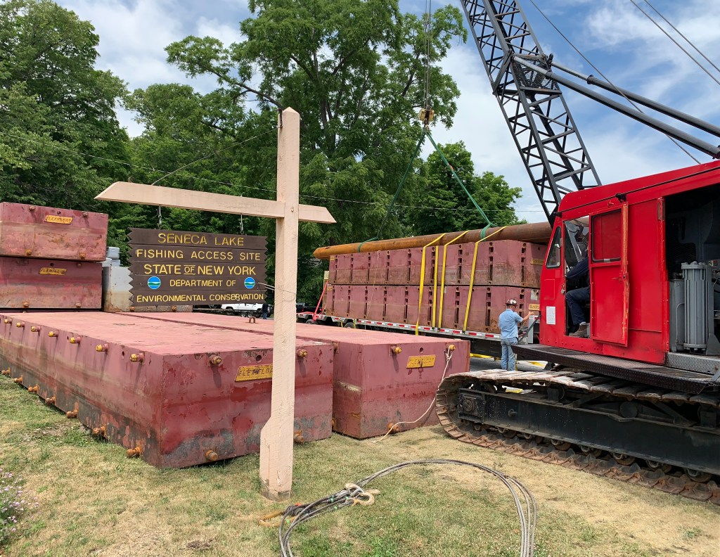 SEVERNE POINT, July 2, 2022 — A day after the state Department of Environmental Conservation denied Greenidge Generation an air permit for its power plant in Dresden, contractors for the company appear to be using a DEC boat launch as a staging area for a new construction project at the facility.