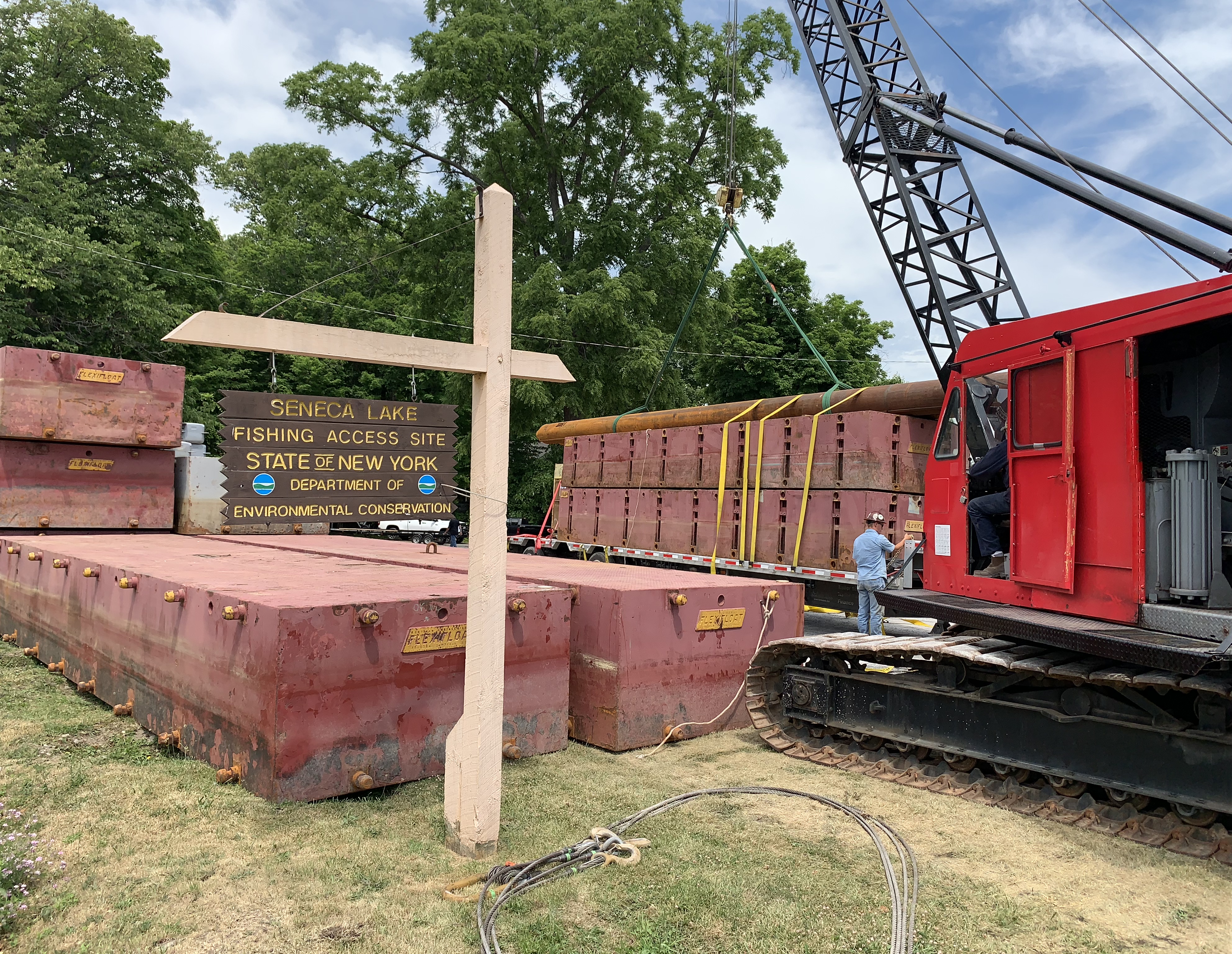 SEVERNE POINT, July 2, 2022 — A day after the state Department of Environmental Conservation denied Greenidge Generation an air permit for its power plant in Dresden, contractors for the company appear to be using a DEC boat launch as a staging area for a new construction project at the facility.