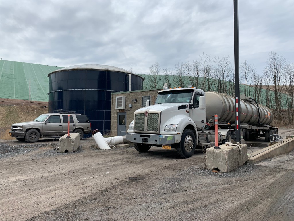 This truck prepared to load raw leachate from Seneca Meadows and carry it to a distant county.