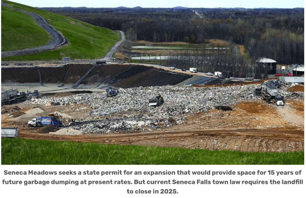 Meanwhile, SMI has applied to the DEC for a permit to expand substantially in spite of a Seneca Falls town law that requires the landfill to close in December 2025.