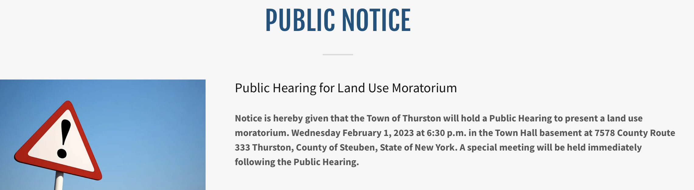 At a sparsely attended town board meeting the following evening, Thurston Town Attorney Shawn Sauro “advised the town board to focus on developing a local law preventing the development of landfills, dumps, sewage waste disposal areas, and hazardous sites,” according to the meeting minutes.