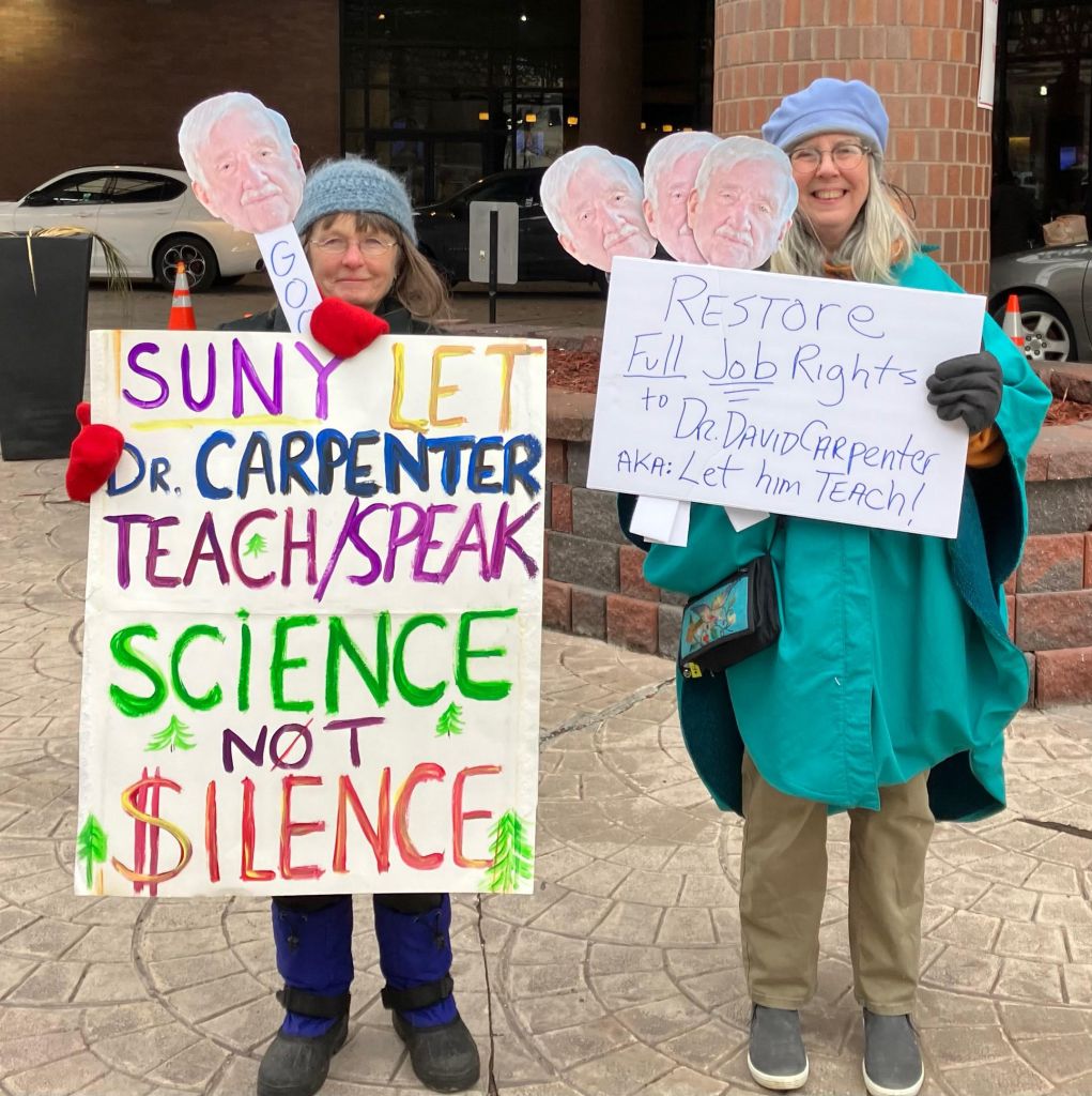 Protesters in Albany and petitioners from around the state are calling for SUNY-Albany to restore Dr. David Carpenter’s academic freedom.