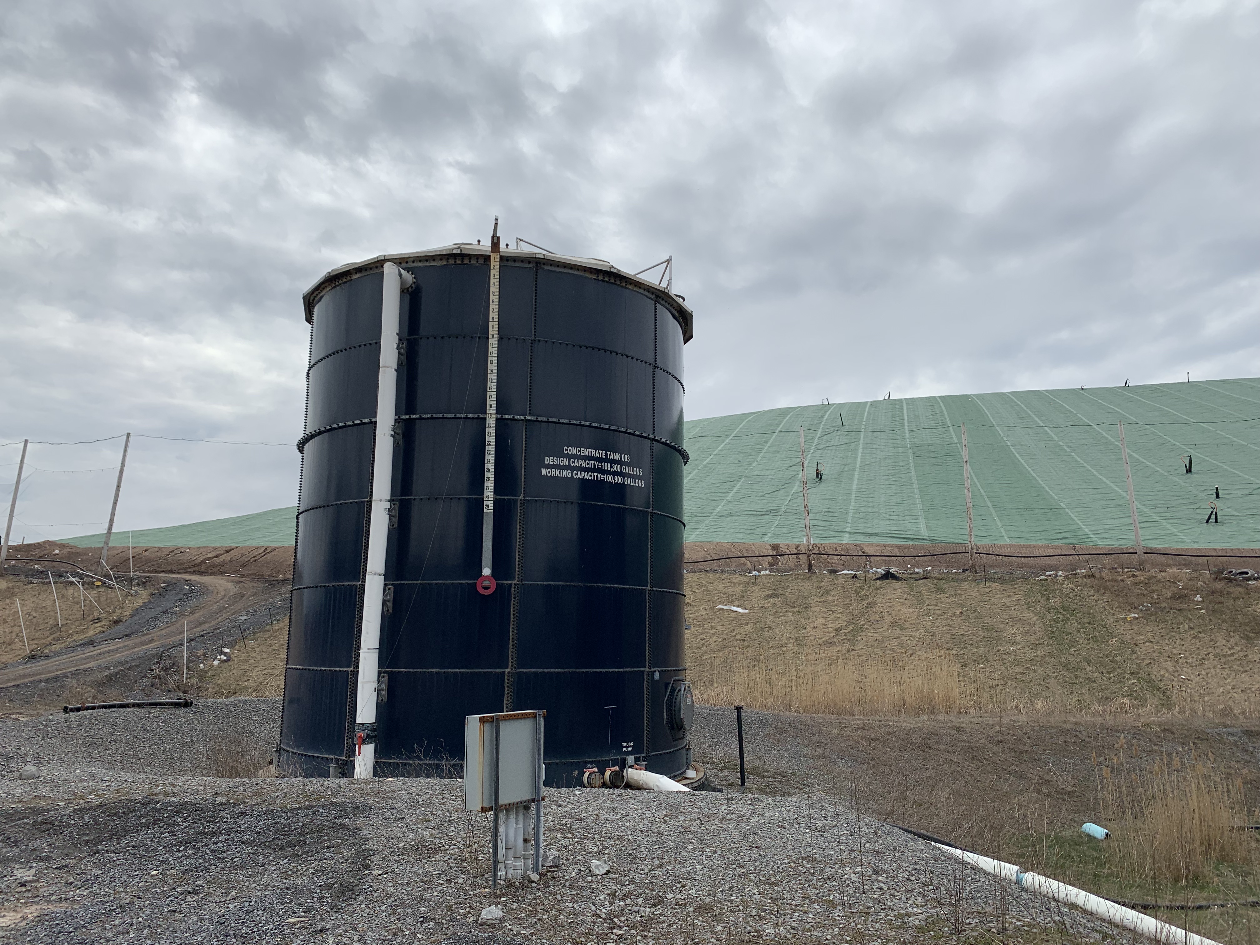 The evaporator at Seneca Meadows dewaters leachate concentrate, which is stored in this tank at the landfill. Tests in 2018 showed the concentrate contained toxic PFOA at 4,160 parts per trillion, roughly one million times the EPA’s health advisory limit for PFOA in tap water.