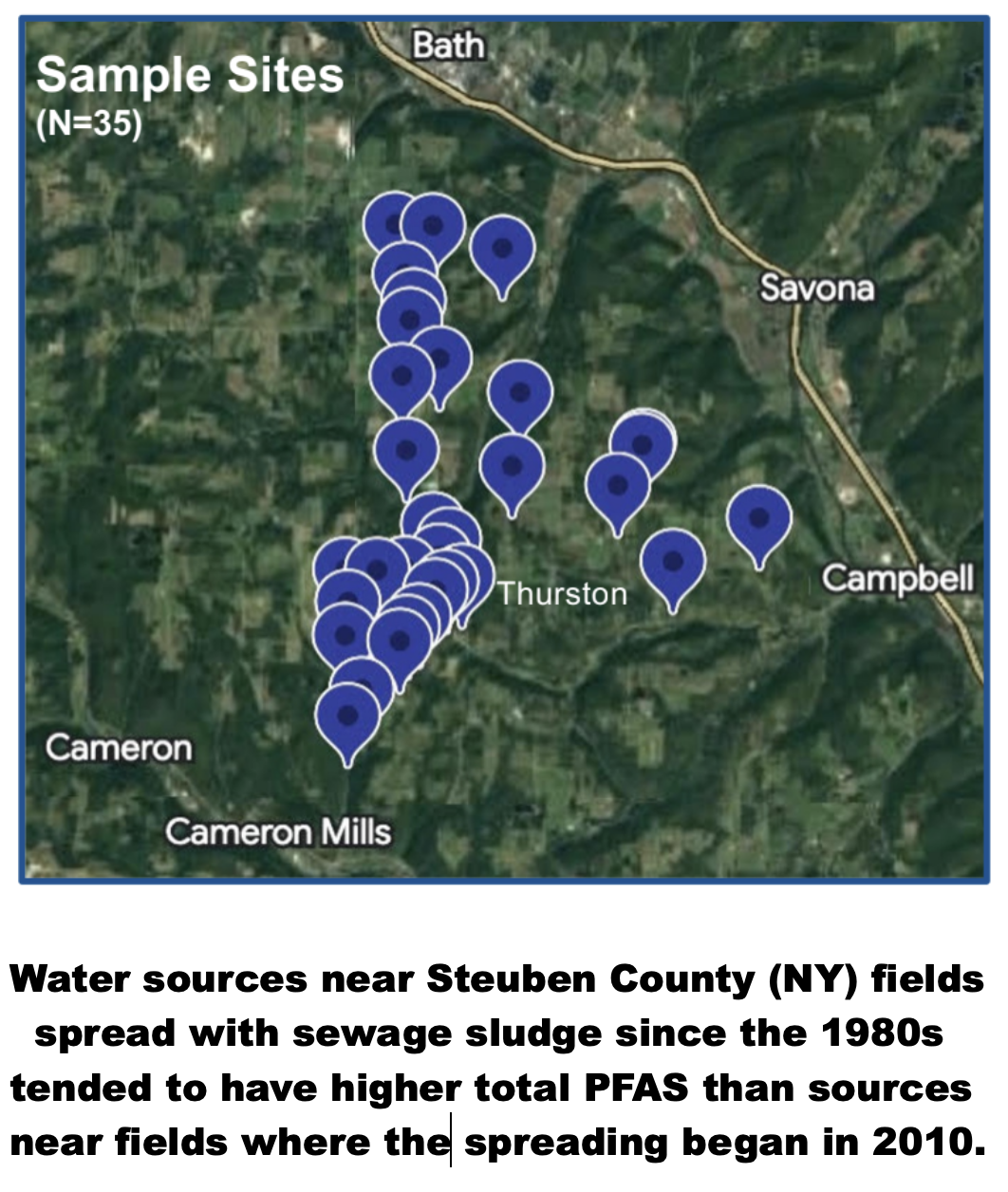 THURSTON, Apr. 20, 2023 — Every water sample from 32 private wells near or adjacent to Steuben County fields that have been spread with municipal sewage sludge contained PFAS chemicals, recent independent testing found.