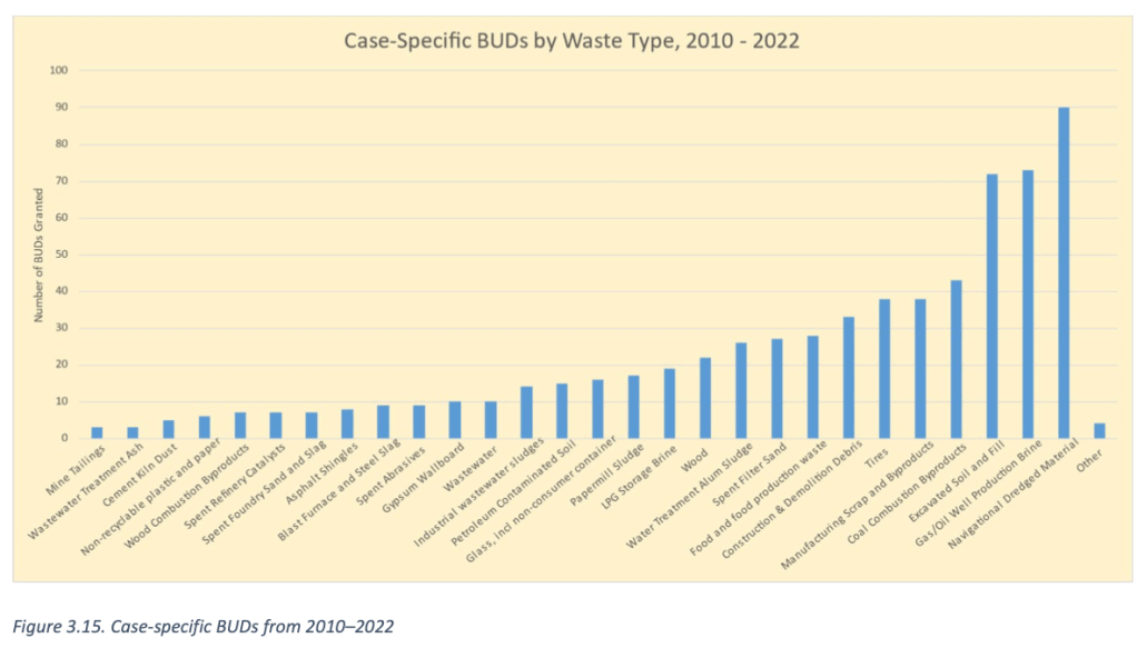 Sewage sludge falls into the recycling category because spreading it on fields has been deemed beneficial. Other substances that have won “beneficial use” status include paper mill sludge, gas/oil well production brine, asphalt shingles, blast furnace slag and coal combustion byproducts.