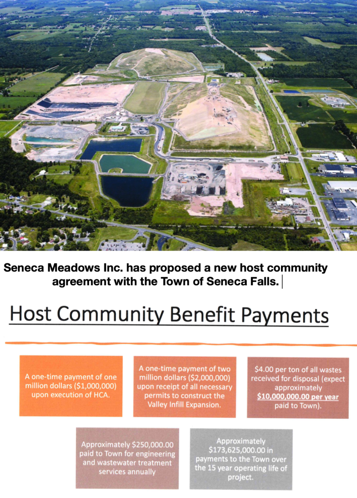 — Annual payments estimated at $10 million per year from the town’s $4-per-ton share of all wastes received. (Annual payments would reportedly be 4.5 times higher than the current agreement).