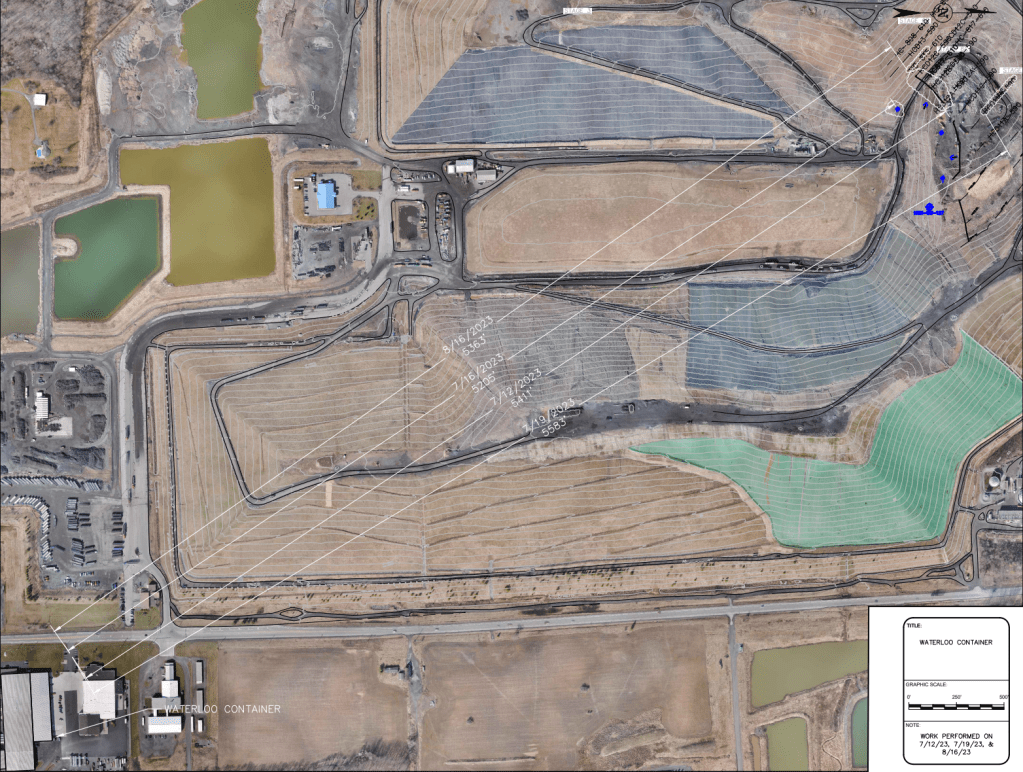 Waterloo Container (lower left), which sits directly across State Route 414 from Seneca Meadows, has filed multiple complaints of “landfill gas” outside and “sewer gas” inside in buildings.