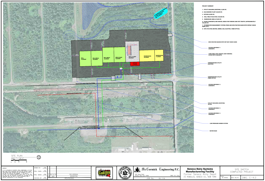 Seneca Dairy Systems Inc. is constructing a 258,000-square-foot facility in the former Seneca Army Depot that will employ up to 300 people and supply large diaries with fencing and animal stalls.