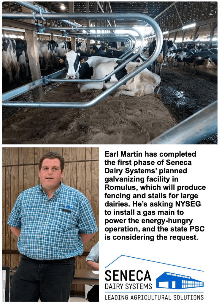 But three years later, SDS owner Earl Martin told NYSEG that natural gas was “the only available fuel source that is economically viable” for the galvanizing plant. In a March 3, 2022 letter to NYSEG’s Nael Amireh, Martin estimated the project would actually need the energy equivalent of 6,000 tons of coal per year.