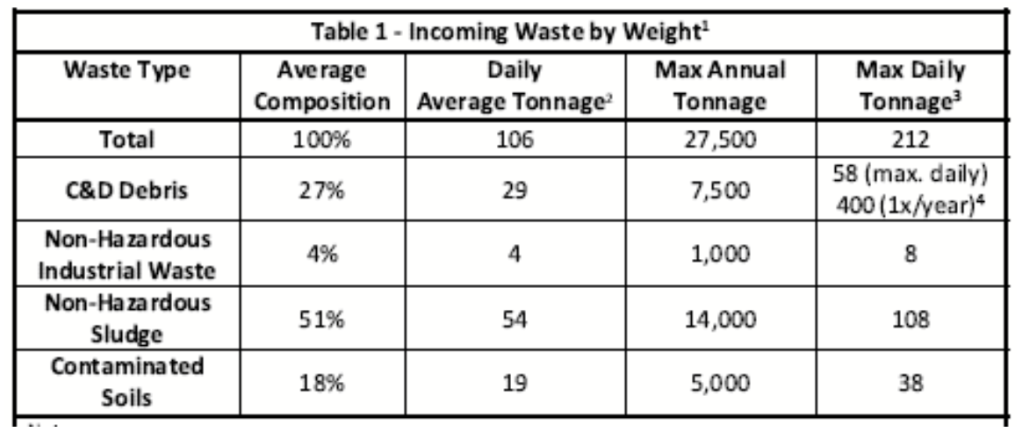 On an average day, Momentum said, it would take in 54 tons of sludge, 29 tons of C&D debris, 19 tons on contaminated soil and 4 tons non-hazardous waste.