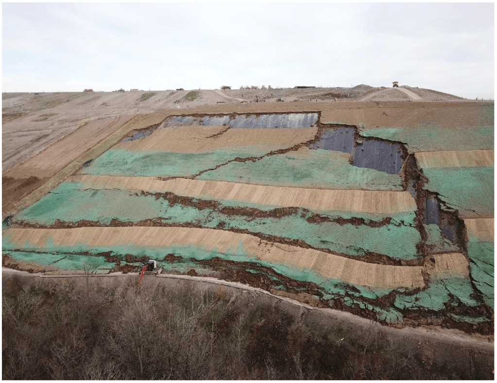 On the afternoon of Nov. 15, a two-foot-thick layer of soil slid down a 3.5-acre section of the landfill’s southwestern face, exposing and tearing a liner that covers buried waste.
