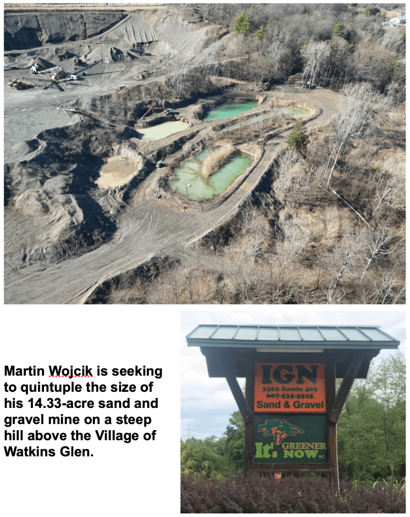 In the surprise January announcement in its Environmental Notice Bulletin, the DEC gave a condensed history of Wojcik’s 16-year bid to expand his mine under his company named It’s Greener Now LLC (IGN).