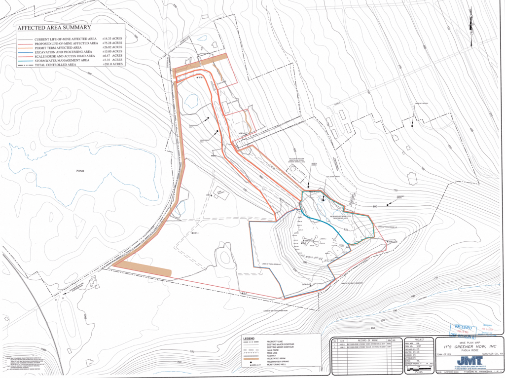 Eighteen months after Wojcik had signed the legally binding 2022 consent agreement, a DEC inspector wrote to an IGN consultant: “Today I inspected the Padua site (across the street from IGN permitted mine) that removed material without a permit. The site is nowhere near an approvable reclamation.”