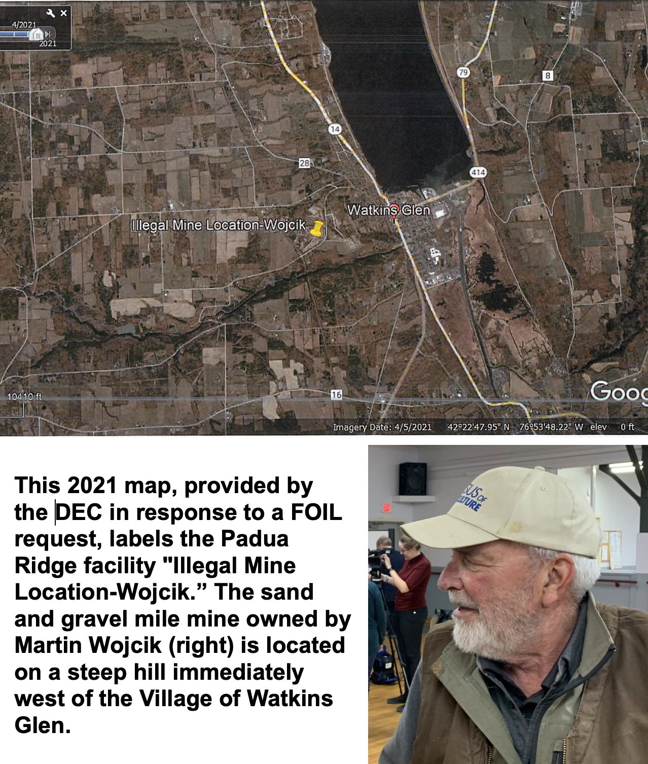 WATKINS GLEN, Apr. 4, 2024 — Three state inspectors dropped by the Padua Ridge gravel mine on cold, cloudy December day in 2010 to order the owner, Martin Wojcik, to halt operations because his permit had expired 13 months earlier.