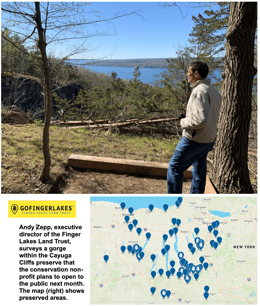 Meanwhile, the Sims-Jennings Preserve on the Cayuga Cliffs, which looks out across the lake at Taughannock Falls State Park, is set to open by mid-June, Zepp said.