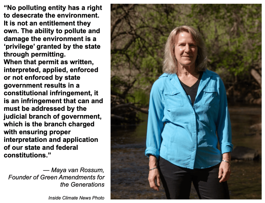 Maya van Rossum, founder of Green Amendments for the Generations, a movement to enact environmental provisions in state laws across the county, disagrees.
